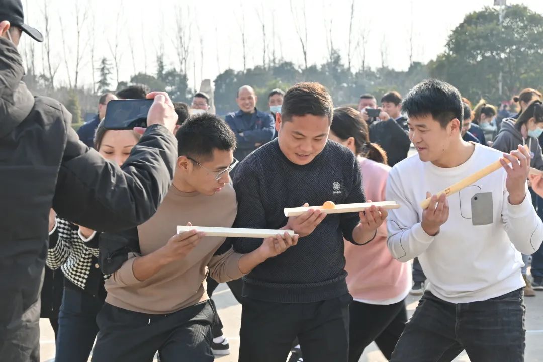 本次活動有“猜燈謎、摸石頭過河、跳大繩、彈球傳遞、南水北調及拔河”共6個項目?;顒蝇F場氣氛熱烈,趣味十足。尤其是拔河比賽開始,活動氛圍推向高潮,來自裝備事業(yè)部、豐聯科光電、科博思新材、三諾新材料的8支參賽隊一決高下,口號聲、吶喊聲響徹活動現場,展現出團隊協作、一往無前、不畏強敵、勇于拼搏的良好精神風貌。經過激烈角逐,裝備事業(yè)部管箱結構車間、電力制片車間、盤管容器車間分別獲得拔河比賽的冠亞季軍。三諾新材料、科博思、營銷1隊、營銷2隊分別摘得4項趣味游戲桂冠。